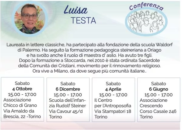 NOTA BENE: l’incontro si terrà presso la Scuola dell’Infanzia Rudolf Steiner di Torino