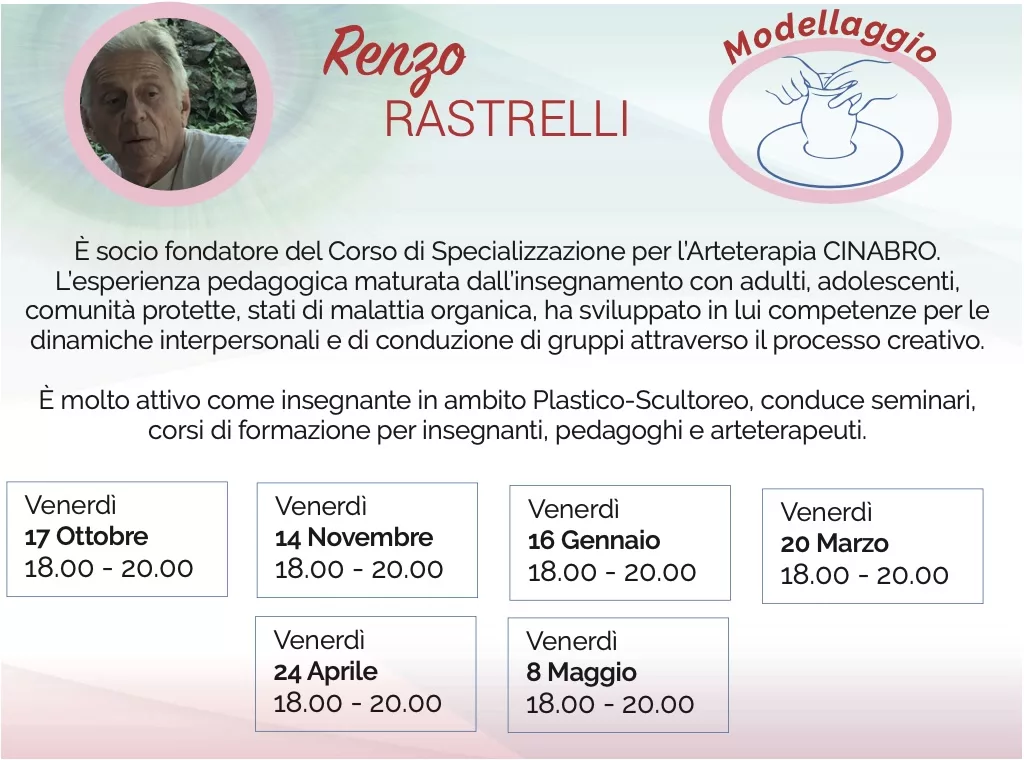 Renzo RASTRELLI Eventi con Renzo RASTRELLI LA COSTRUZIONE DEL CORPO UMANO IN DODICI TAPPE 27 Novembre 2025 Nessun commento Venerdì 16 gennaio 2026 – ore 18.00-20.00 LA COSTRUZIONE DEL CORPO UMANO IN DODICI TAPPE Laboratorio di… Read More